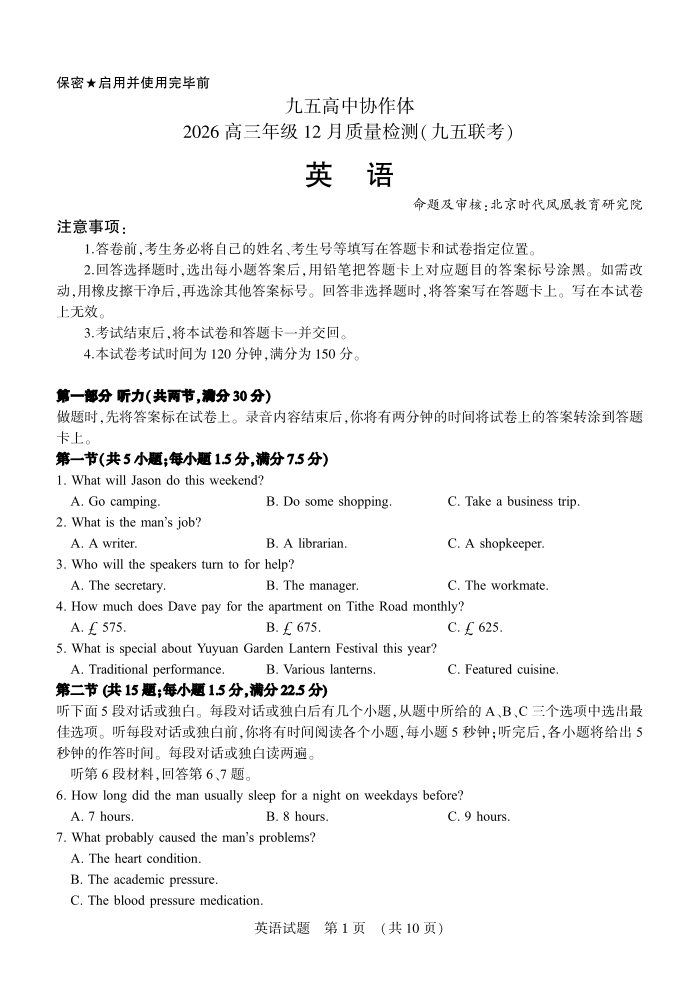 山东省·九五高中协作体2026届高三年级12月质量检测 英语.pdf