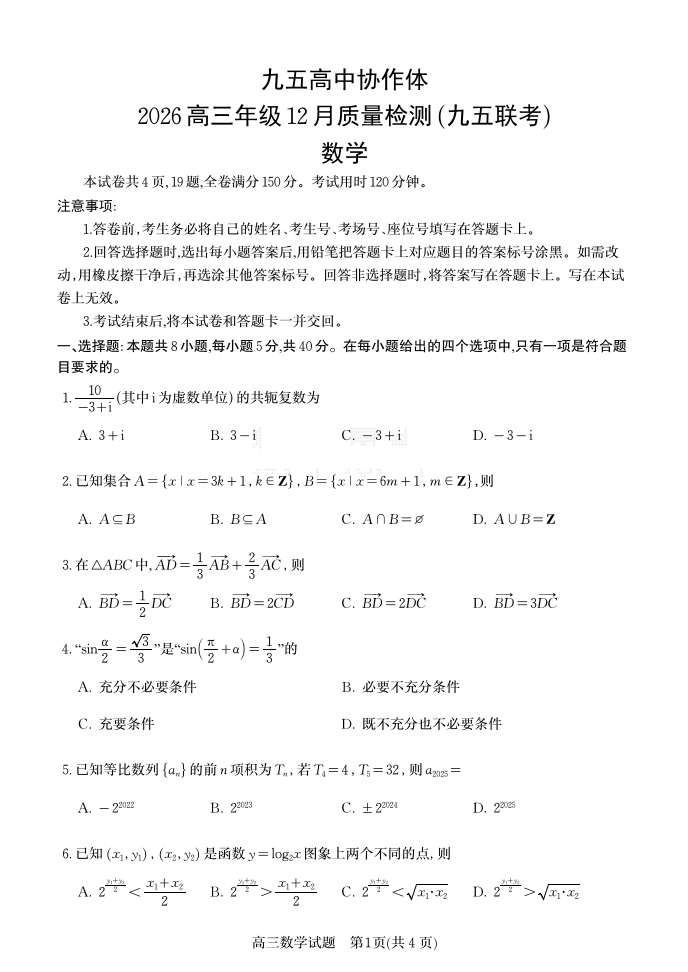 山东省·九五高中协作体2026届高三年级12月质量检测 数学.pdf