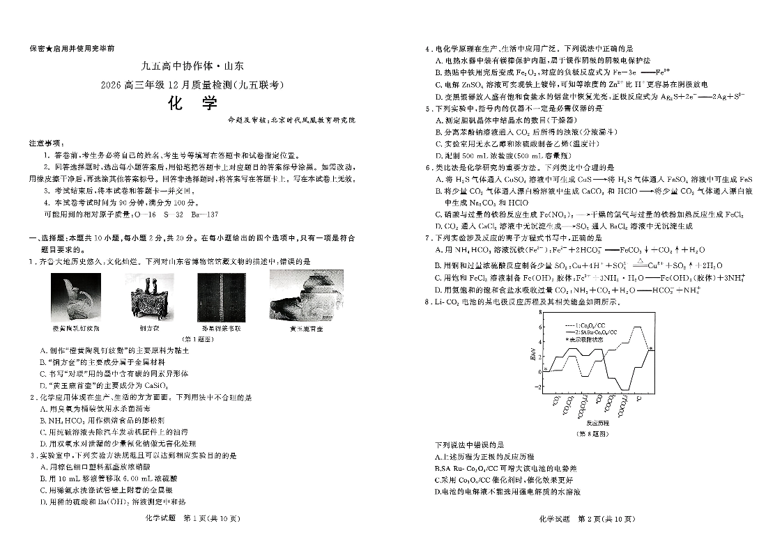 山东省·九五高中协作体2026届高三年级12月质量检测 化学.pdf