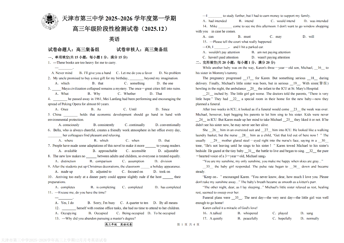 天津市第三中学2025-2026学年度第一学期高三年级12月阶段性检测 英语.pdf