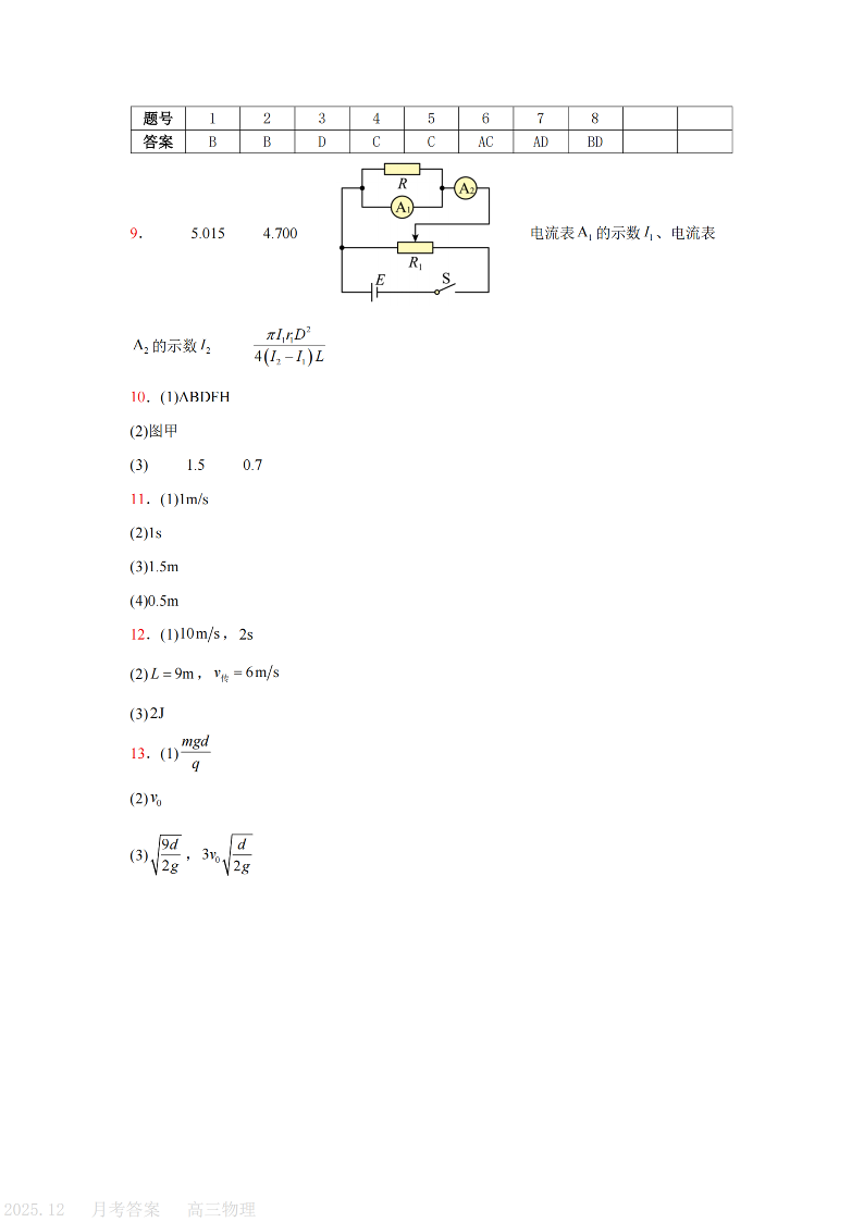 天津市第三中学2025-2026学年度第一学期高三年级12月阶段性检测 物理答案.pdf