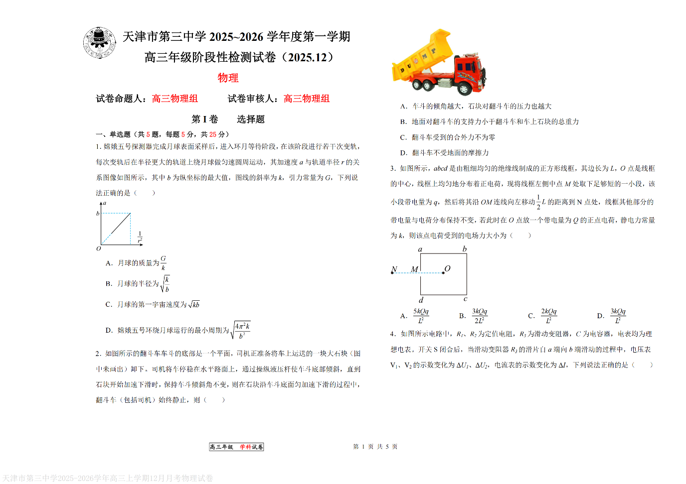天津市第三中学2025-2026学年度第一学期高三年级12月阶段性检测 物理.pdf