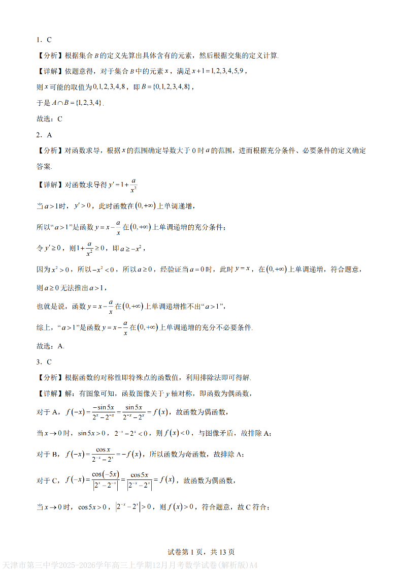 天津市第三中学2025-2026学年度第一学期高三年级12月阶段性检测 数学答案.pdf