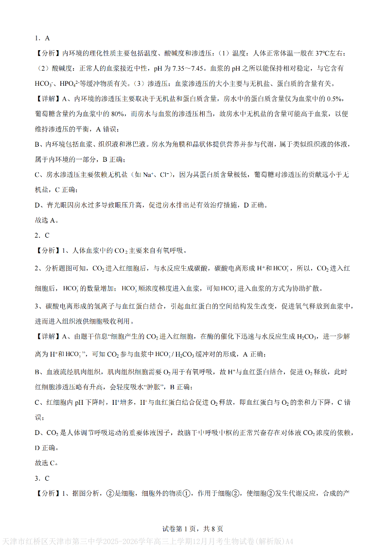 天津市第三中学2025-2026学年度第一学期高三年级12月阶段性检测 生物答案.pdf