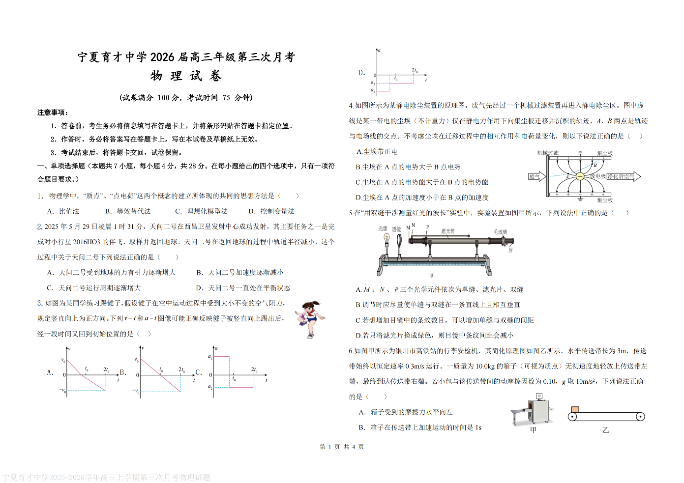 宁夏育才中学2026届高三年级第三次月考 物理.pdf