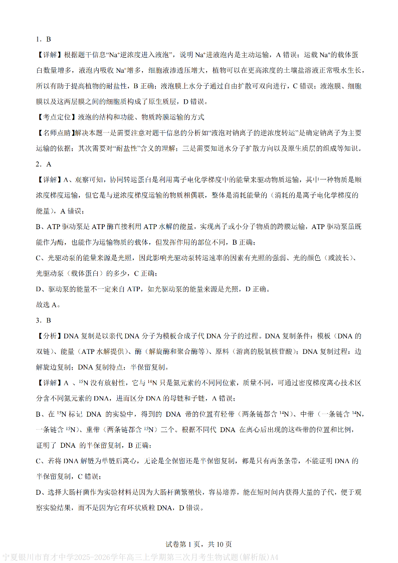 宁夏育才中学2026届高三年级第三次月考 生物答案.pdf