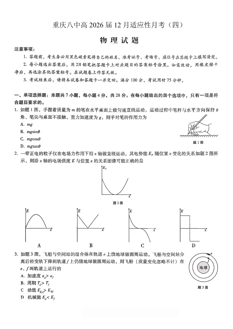 重庆市第八中学2026届高考适应性月考卷(四)物理.pdf
