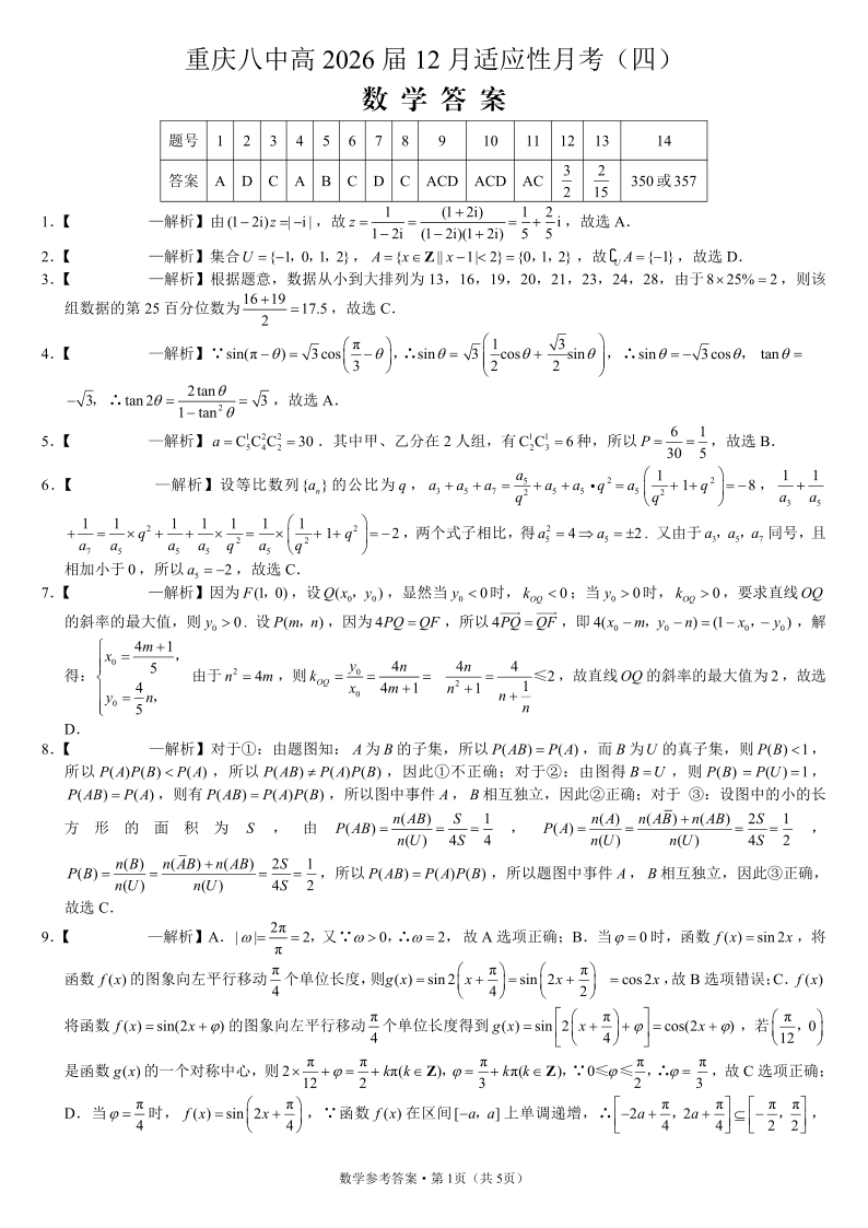 重庆市第八中学2026届高考适应性月考卷(四)数学答案.pdf