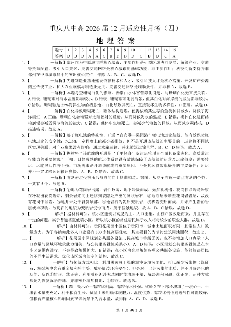 重庆市第八中学2026届高考适应性月考卷(四)地理答案.pdf