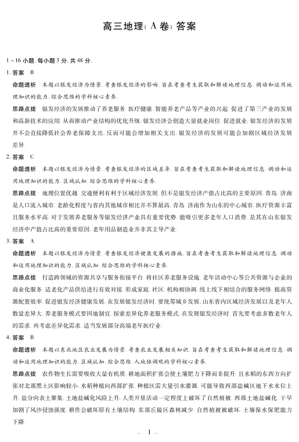 地理A卷 安徽高三12月考答案.pdf
