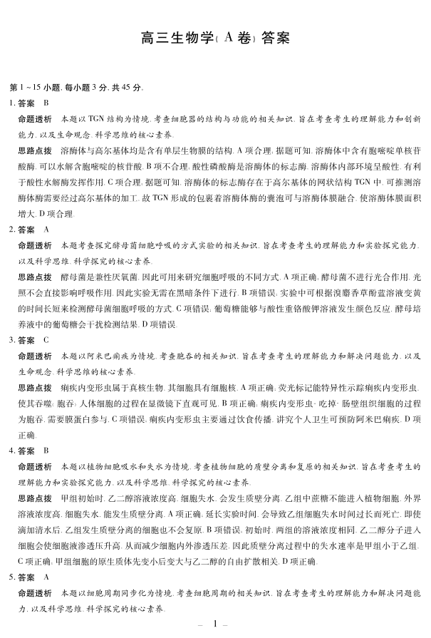 生物学A卷 安徽高三12月考答案.pdf