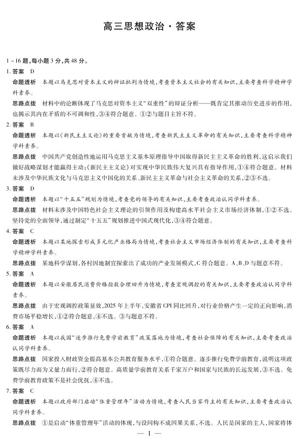 思想政治 安徽高三12月考答案.pdf