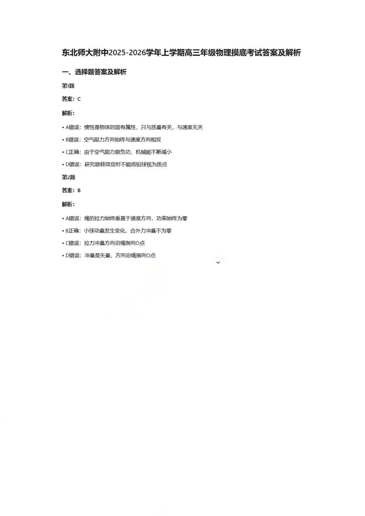 东北师大附中2025-2026学年上学期高三年级第三次摸底考试 物理答案.pdf