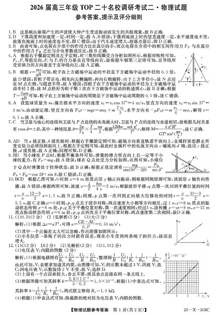 河南省2026届高三年级TOP二十名校调研考试二 物理答案.pdf