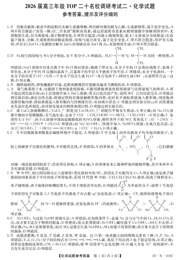 河南省2026届高三年级TOP二十名校调研考试二 化学答案.pdf