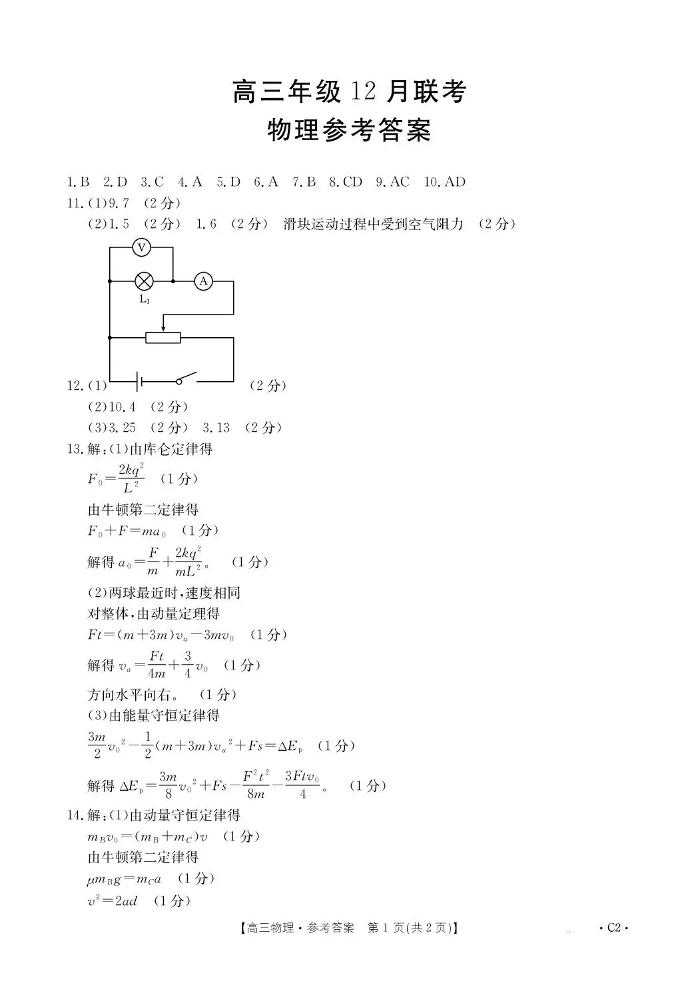河北省2026届高三上学期12月联考 物理答案.pdf