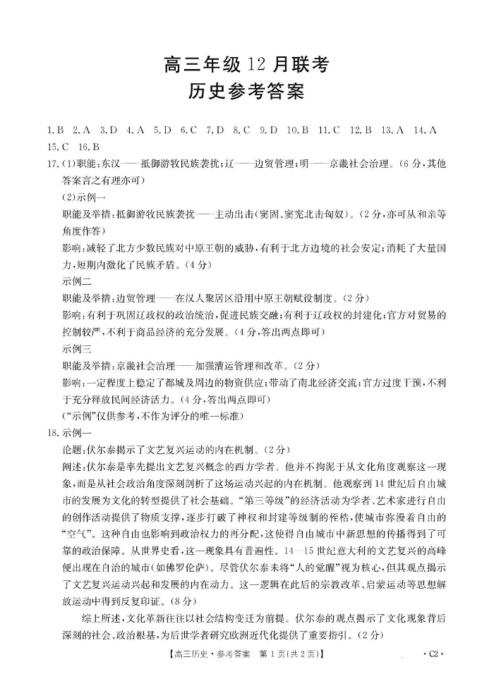 河北省2026届高三上学期12月联考 历史答案.pdf