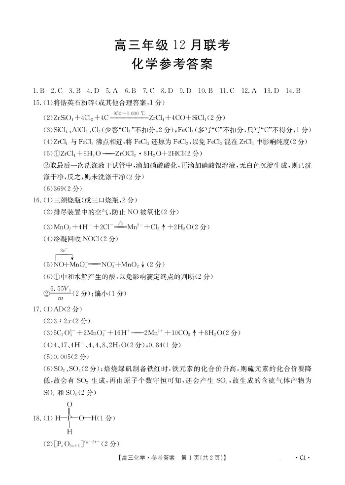 河北省2026届高三上学期12月联考 化学(C1)答案.pdf