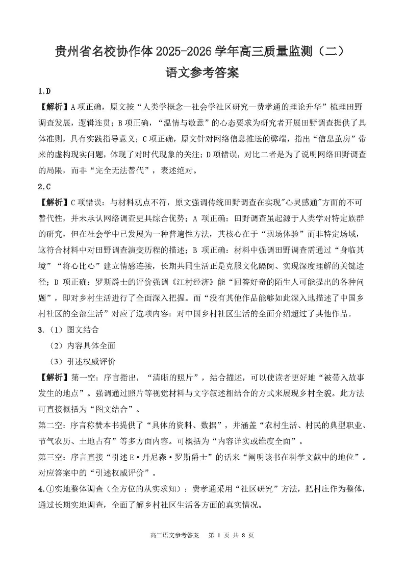 贵州省名校协作体2025-2026学年高三质量监测(二)语文答案.pdf