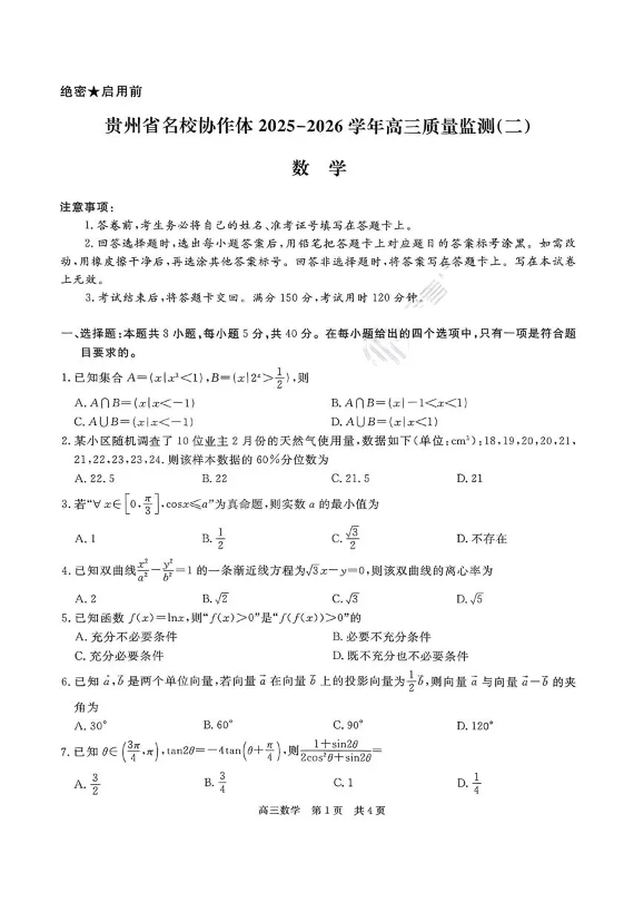 贵州省名校协作体2025-2026学年高三质量监测(二)数学.pdf