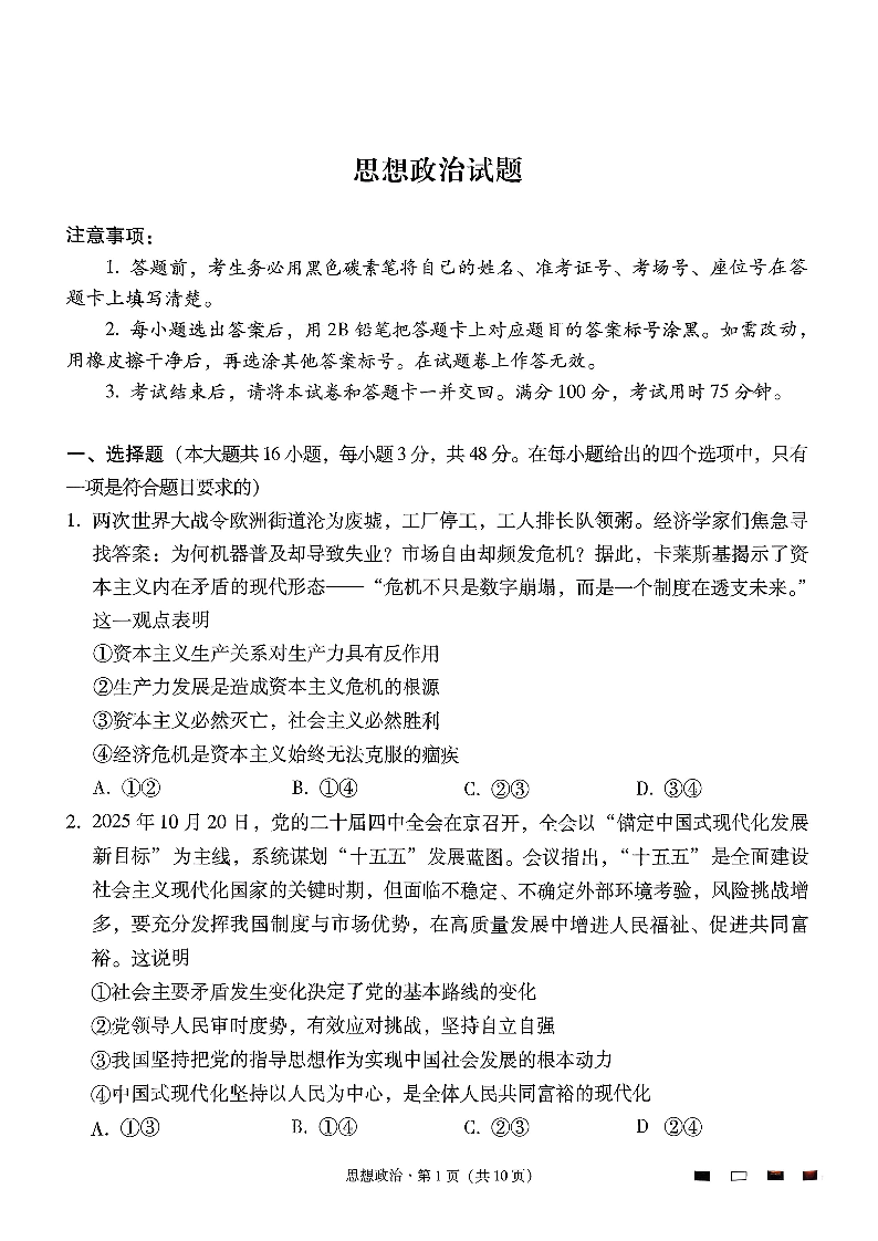 贵州省六校联盟2026届高三上学期高考实用性联考卷(二)政治.pdf