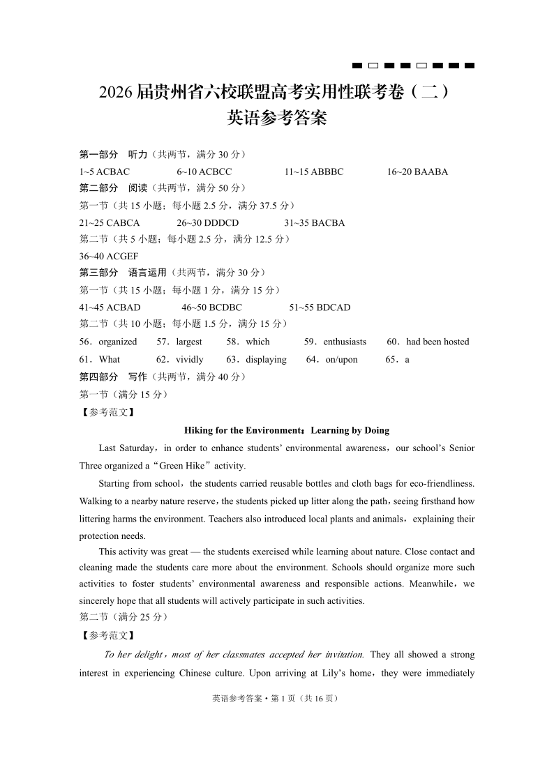 贵州省六校联盟2026届高三上学期高考实用性联考卷(二)英语答案.pdf