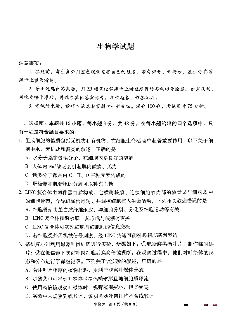 贵州省六校联盟2026届高三上学期高考实用性联考卷(二)生物.pdf