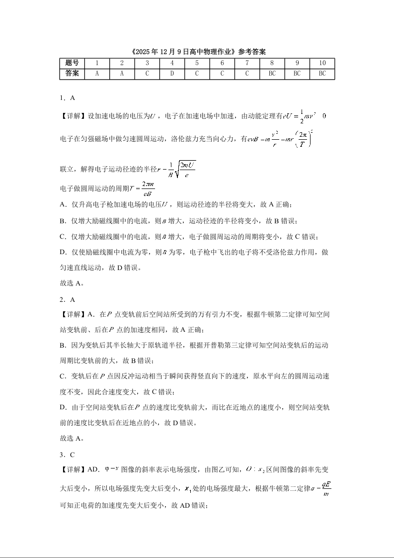 西安中学2026届高三质量检测考试(三)物理答案.docx