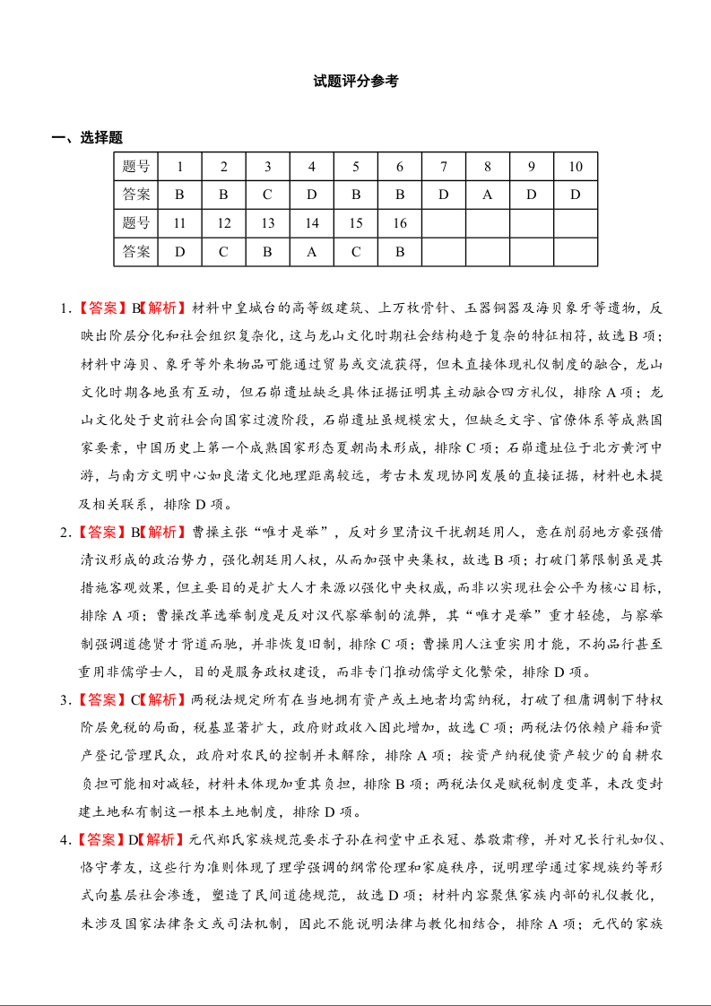 西安中学2026届高三质量检测考试(三)历史答案.docx