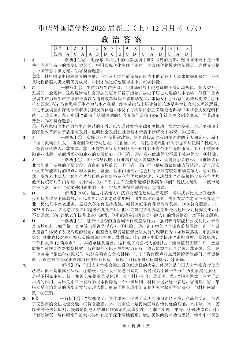 重庆外国语学校高2026届高三(上)12月月考(六)政治答案.pdf