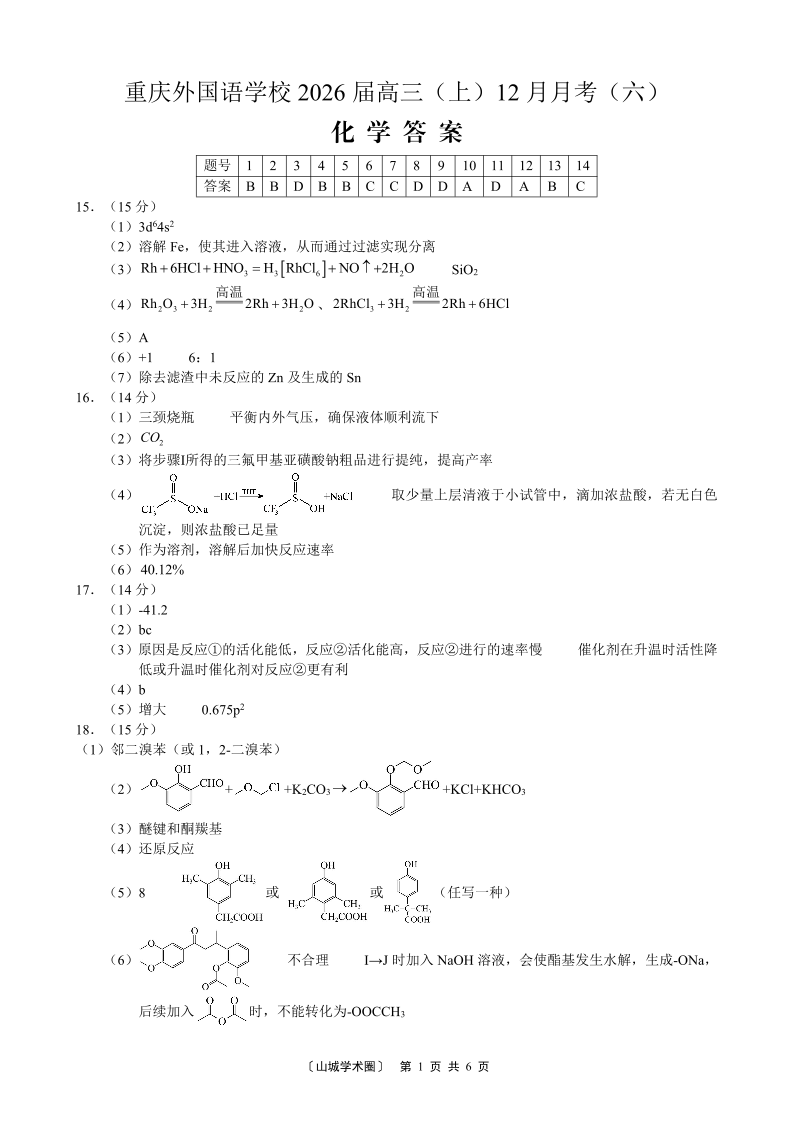 重庆外国语学校高2026届高三(上)12月月考(六)化学答案.pdf