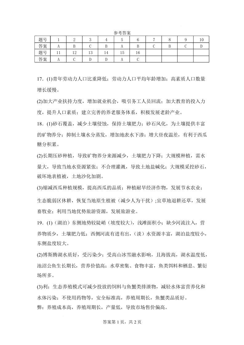牡丹江市第二高级中学2026届高三第四次阶段性考试 地理答案.docx