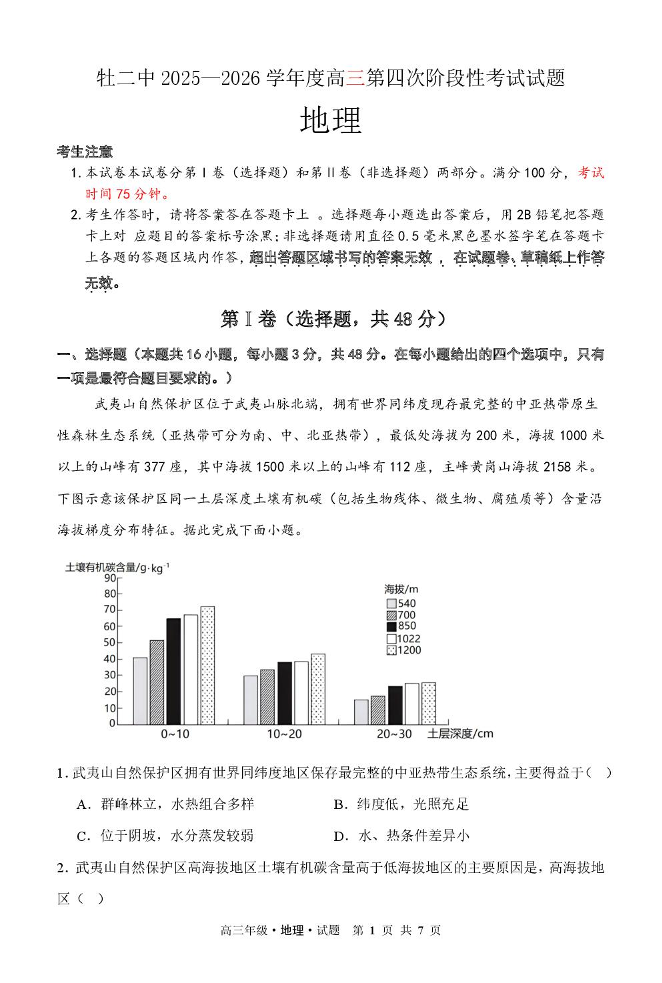 牡丹江市第二高级中学2026届高三第四次阶段性考试 地理.pdf