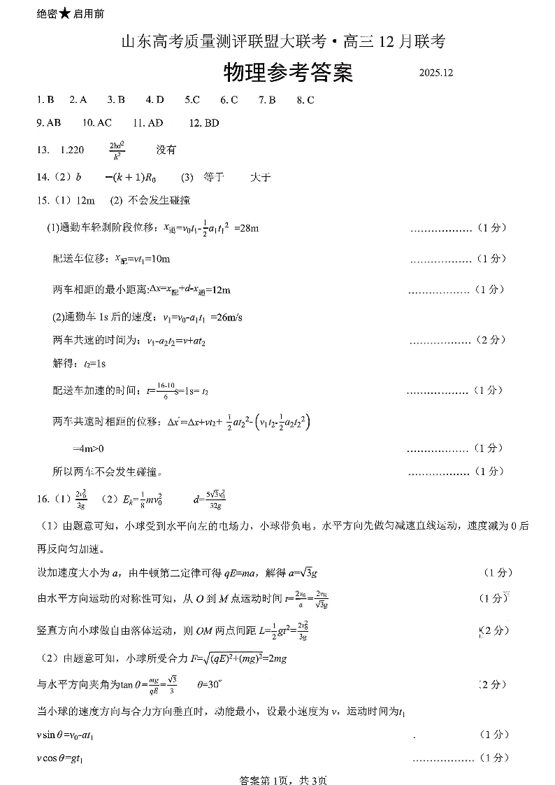 山东高考质量测评联盟大联考·高三12月联考 物理答案.pdf