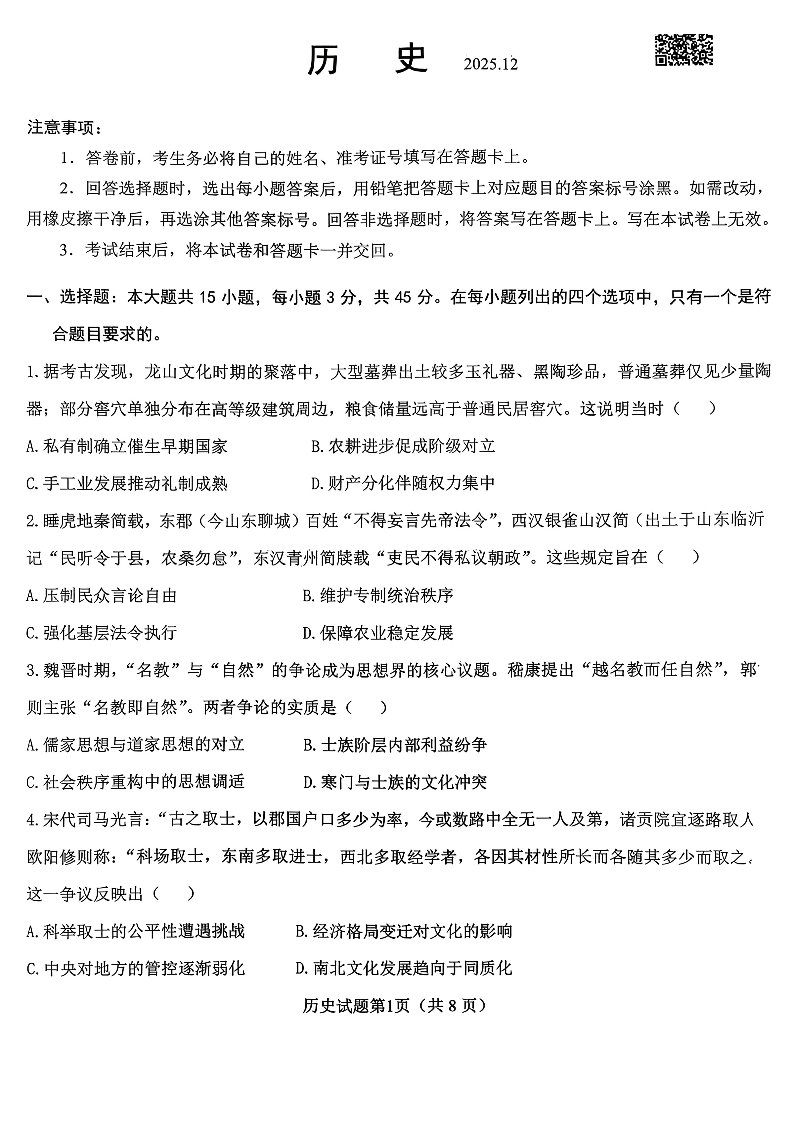 山东高考质量测评联盟大联考·高三12月联考 历史.pdf