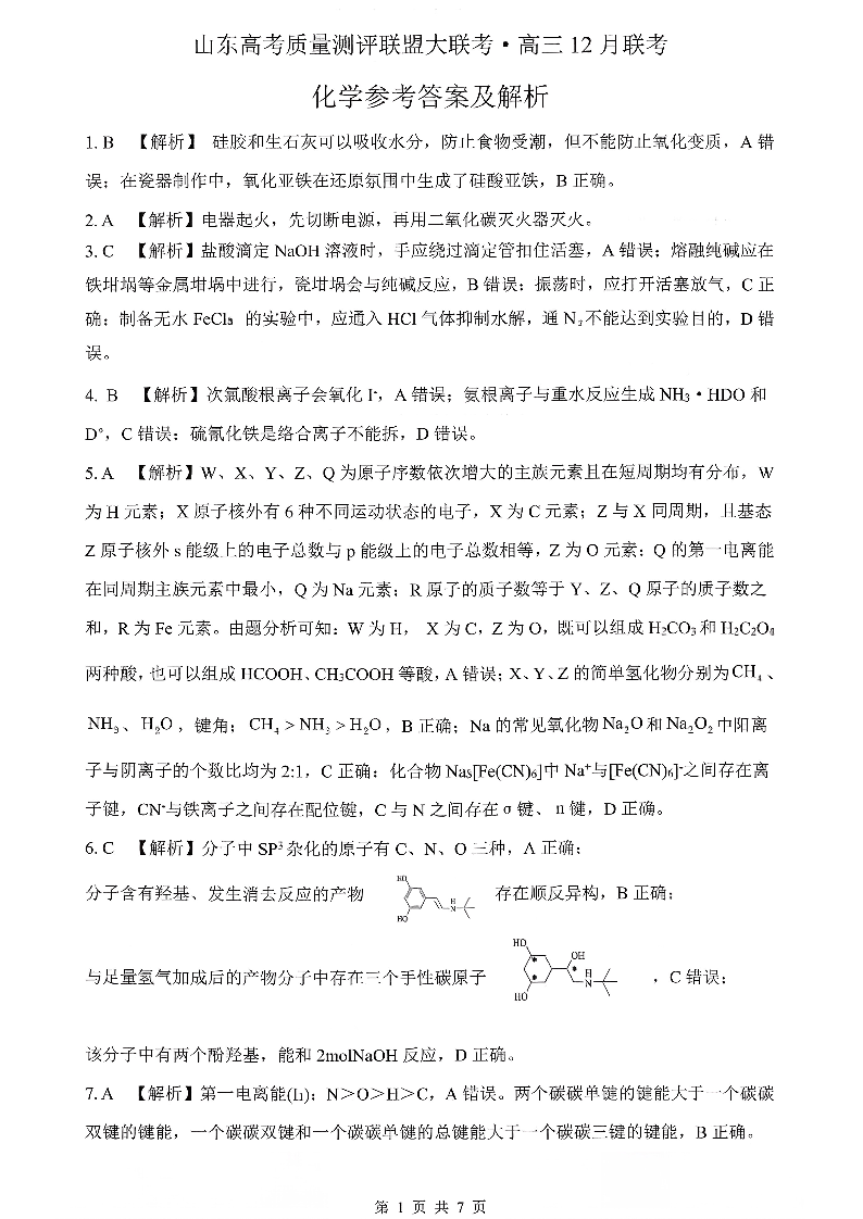 山东高考质量测评联盟大联考·高三12月联考 化学答案.pdf