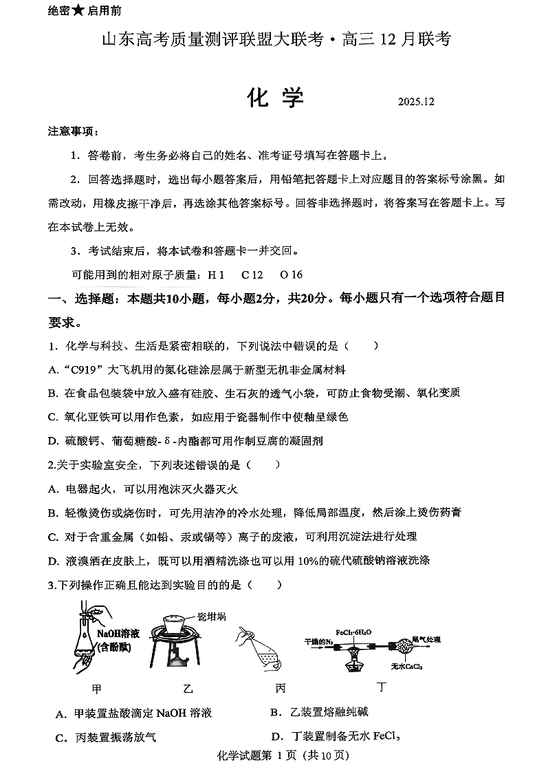 山东高考质量测评联盟大联考·高三12月联考 化学.pdf