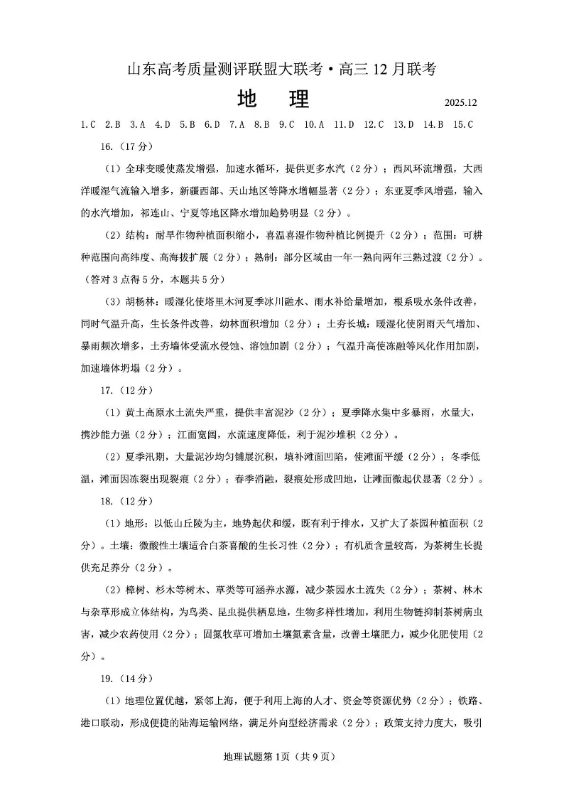 山东高考质量测评联盟大联考·高三12月联考 地理答案.pdf