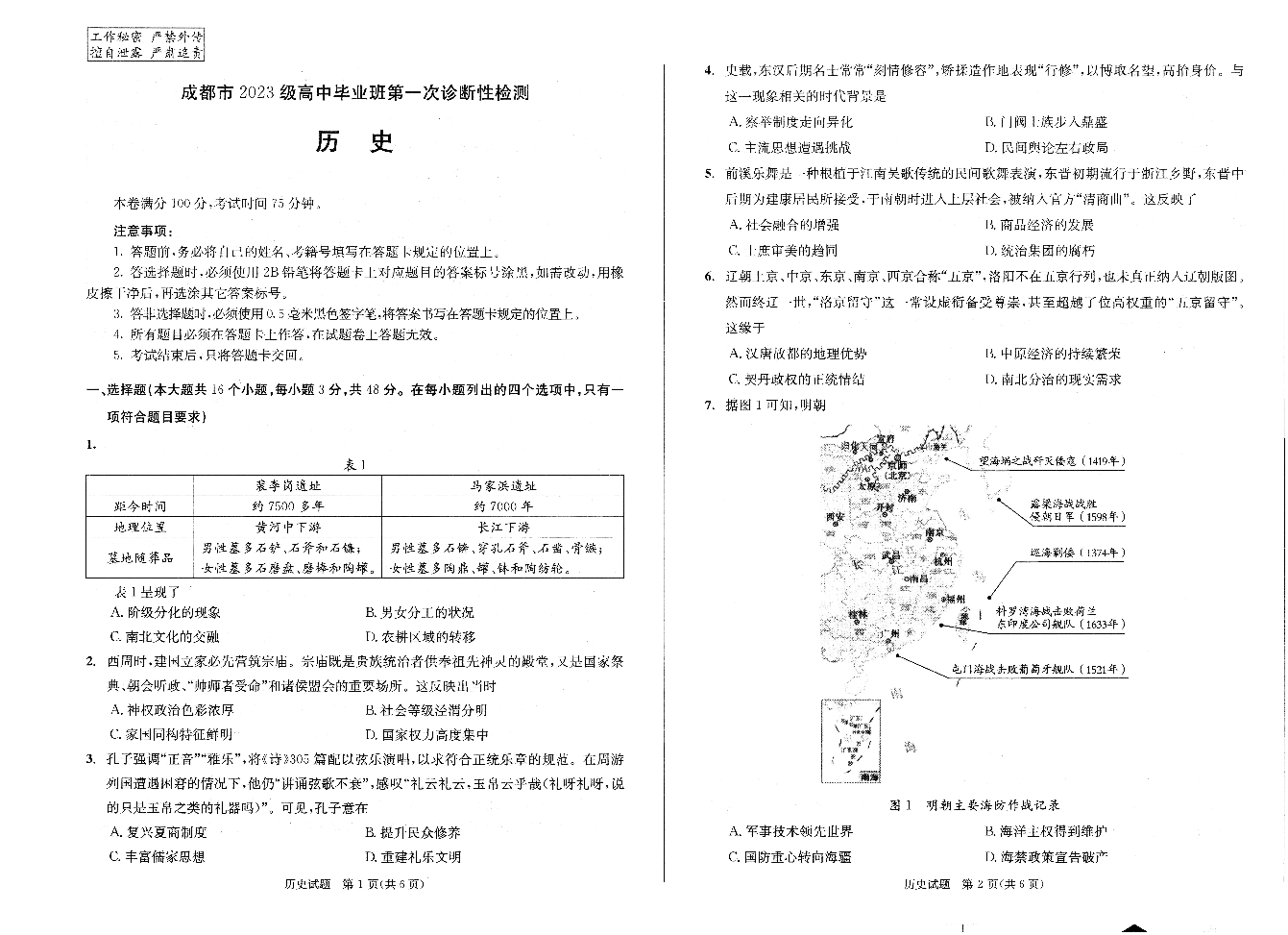 成都市2023级高中毕业班第一次诊断性检测 历史.pdf