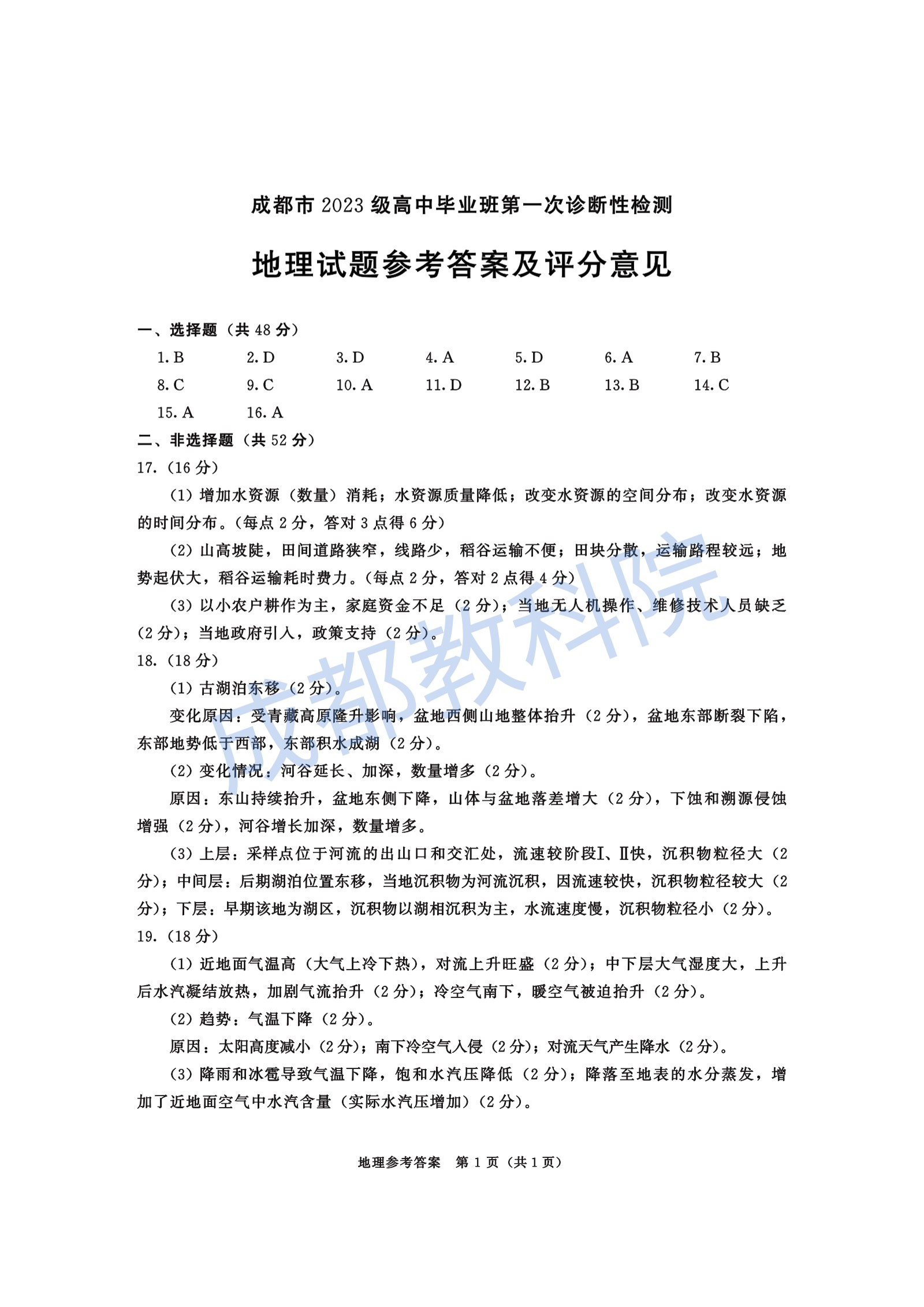 成都市2023级高中毕业班第一次诊断性检测 地理答案.pdf