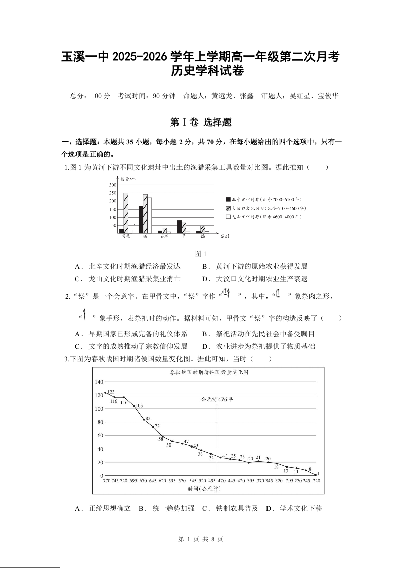 玉溪一中2025-2026学年高一上学期第二次月考 历史.docx