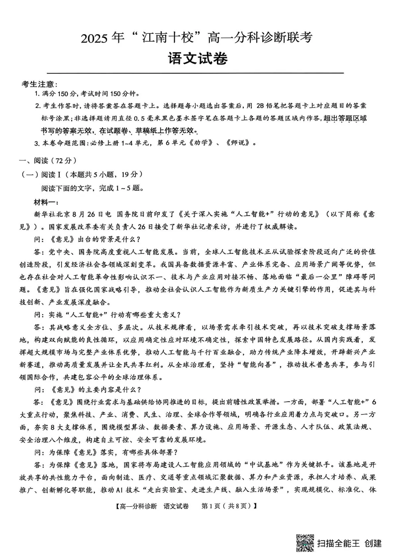 2025年“江南十校”高一分科诊断联考 语文.pdf