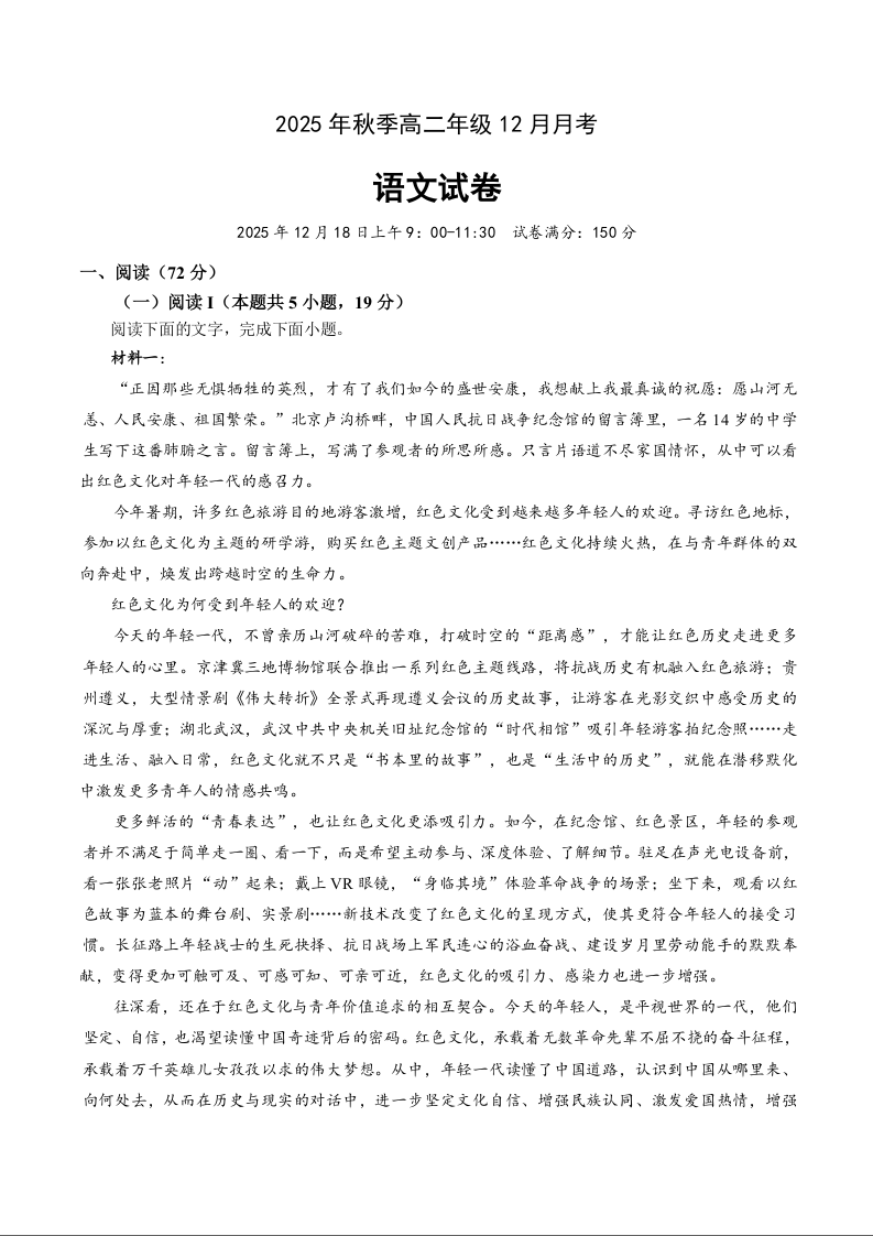 湖北省重点高中智学联盟2025-2026学年高二上学期12月月考 语文.docx