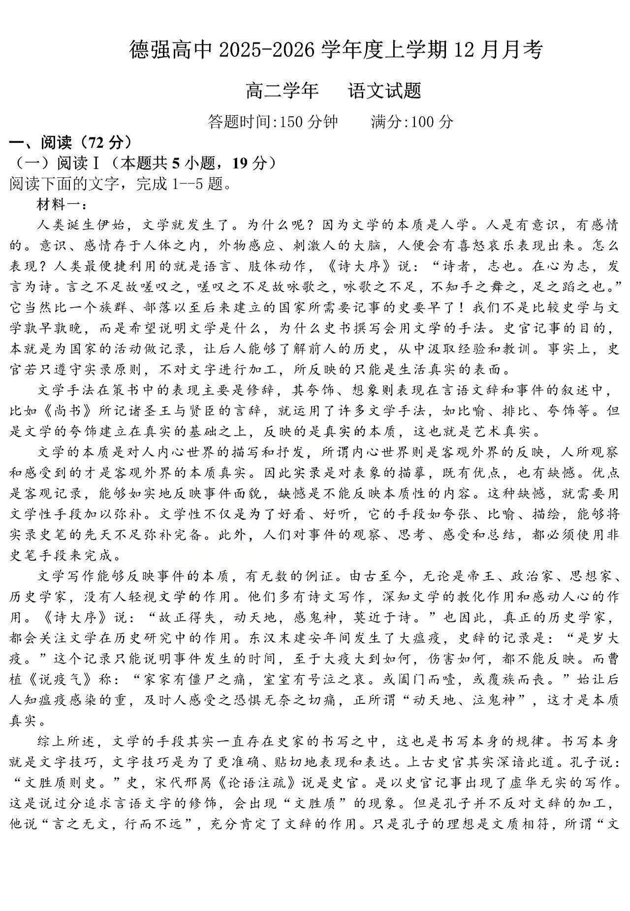黑龙江省德强高中2025-2026学年高二上学期12月月考 语文试题(含答案).pdf
