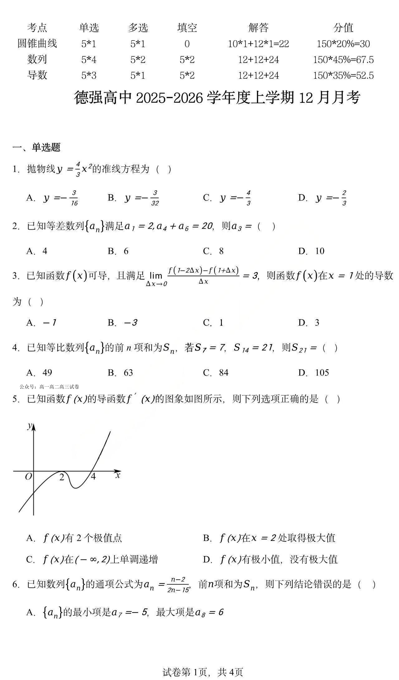 黑龙江省德强高中2025-2026学年高二上学期12月月考 数学试题(含答案).pdf