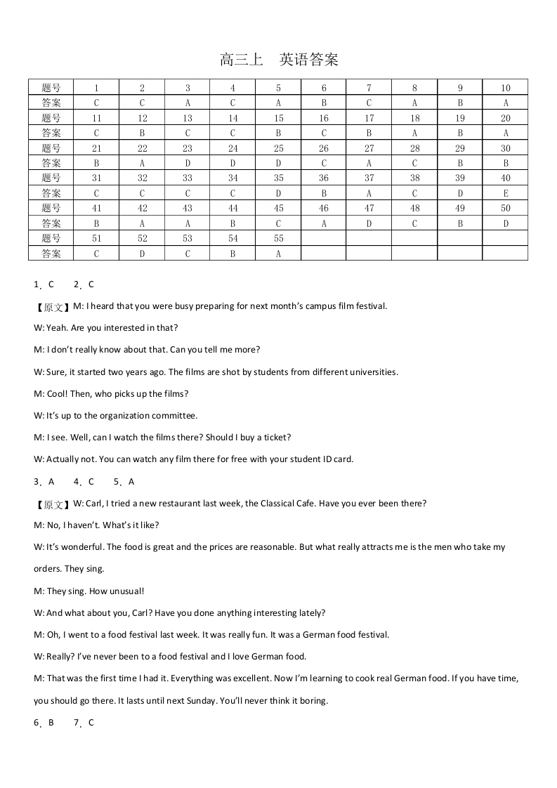 集宁一中2025-2026学年第一学期高三年级12月学业诊断检测 英语答案.docx