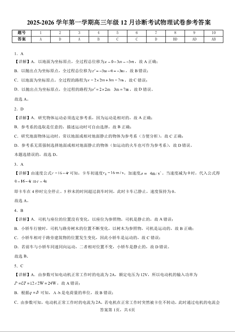 集宁一中2025-2026学年第一学期高三年级12月学业诊断检测 物理答案.docx