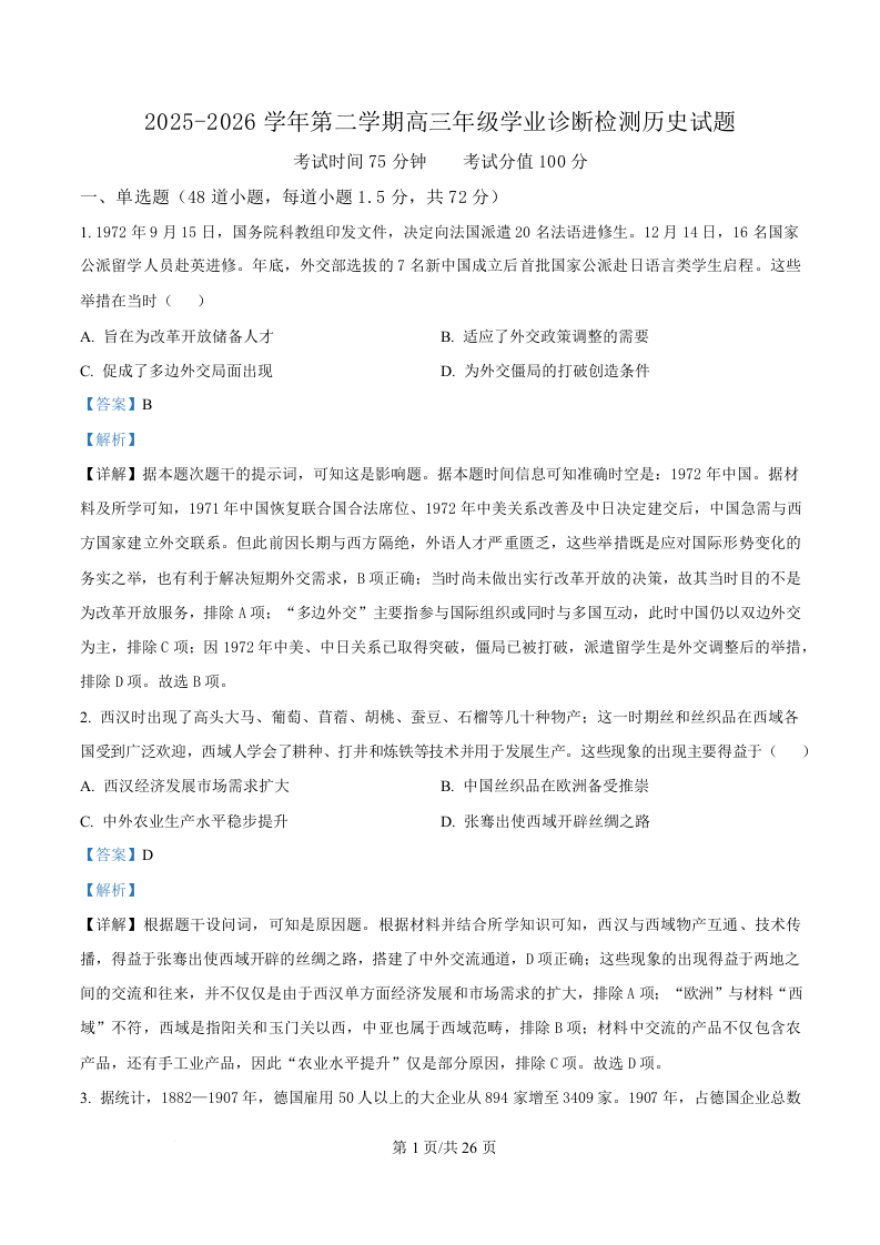 集宁一中2025-2026学年第一学期高三年级12月学业诊断检测 历史答案.docx