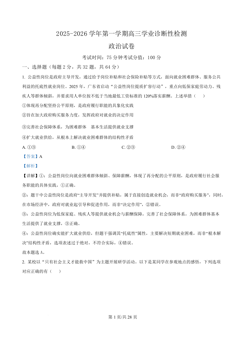 呼伦贝尔市海拉尔第二中学2025-2026学年第一学期高三年级12月诊断考试 政治答案.docx