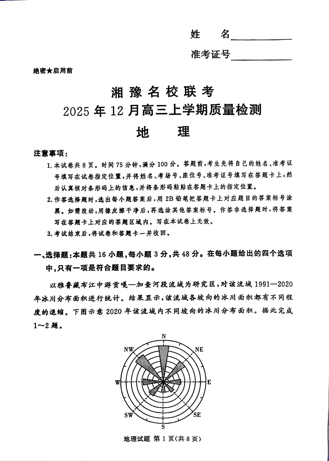 湘豫名校联考2025年12月高三上学期质量检测 地理.pdf